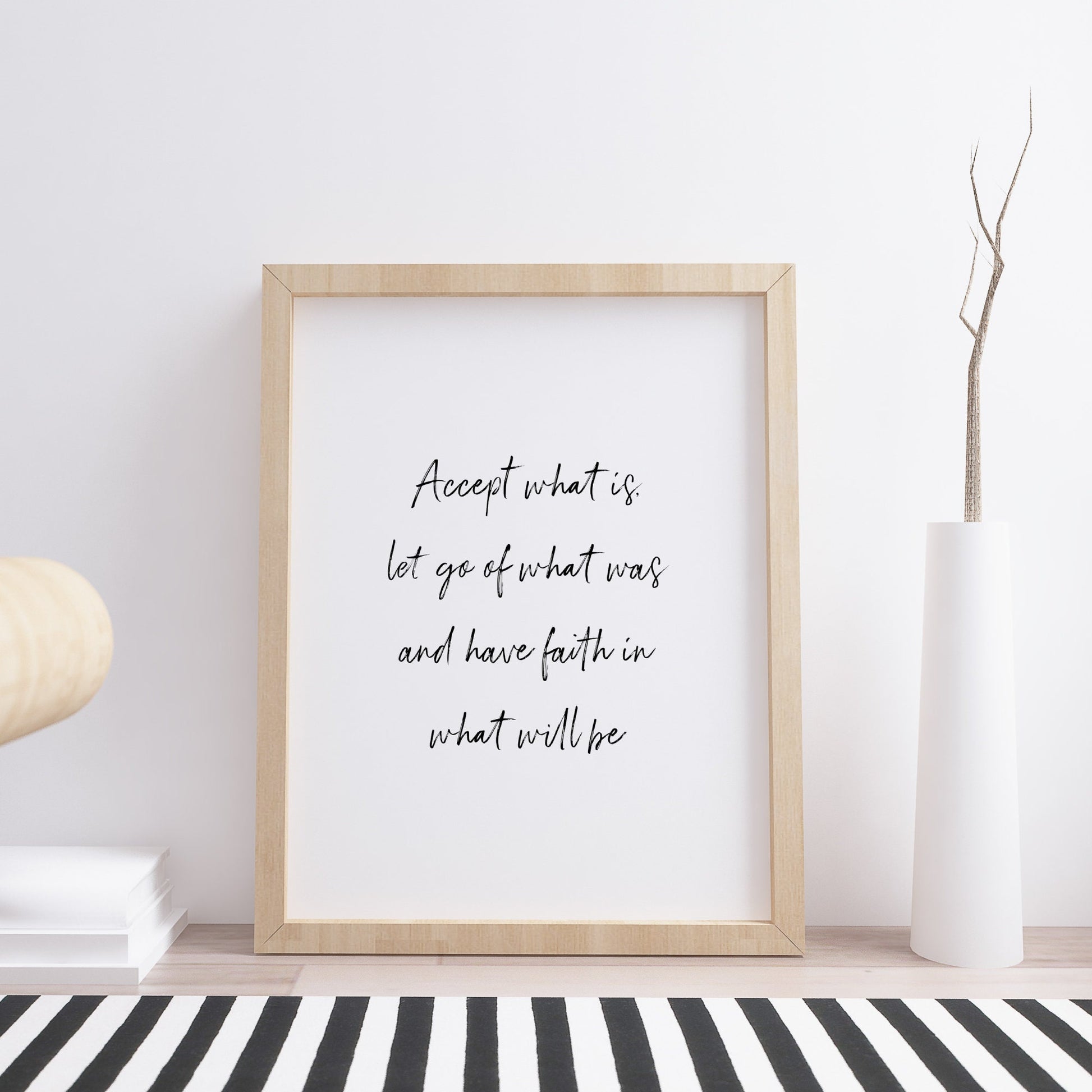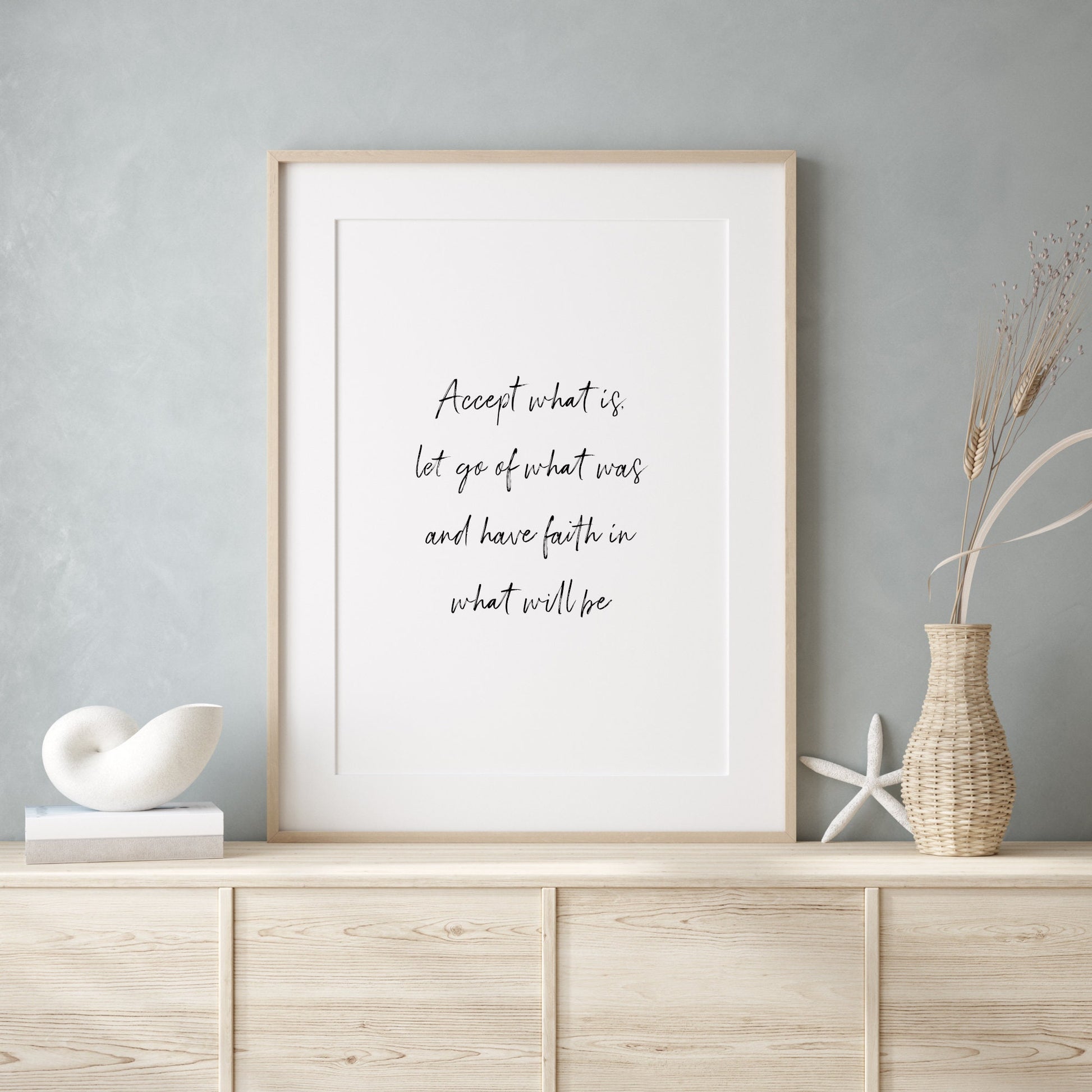 Quote reads "Accept what is, let go of what was and have faith in what will be".