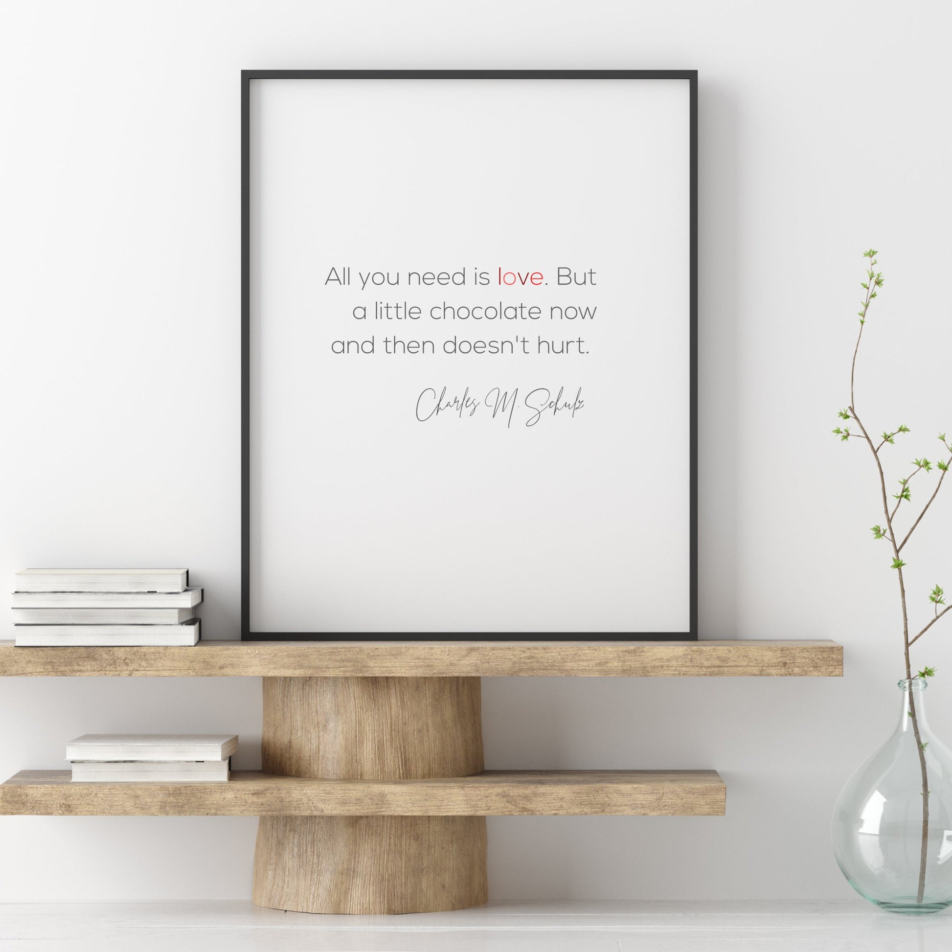 Quote reads "All you need is love. But a little chocolate now and then doesn't hurt. Charles M. Schulz".