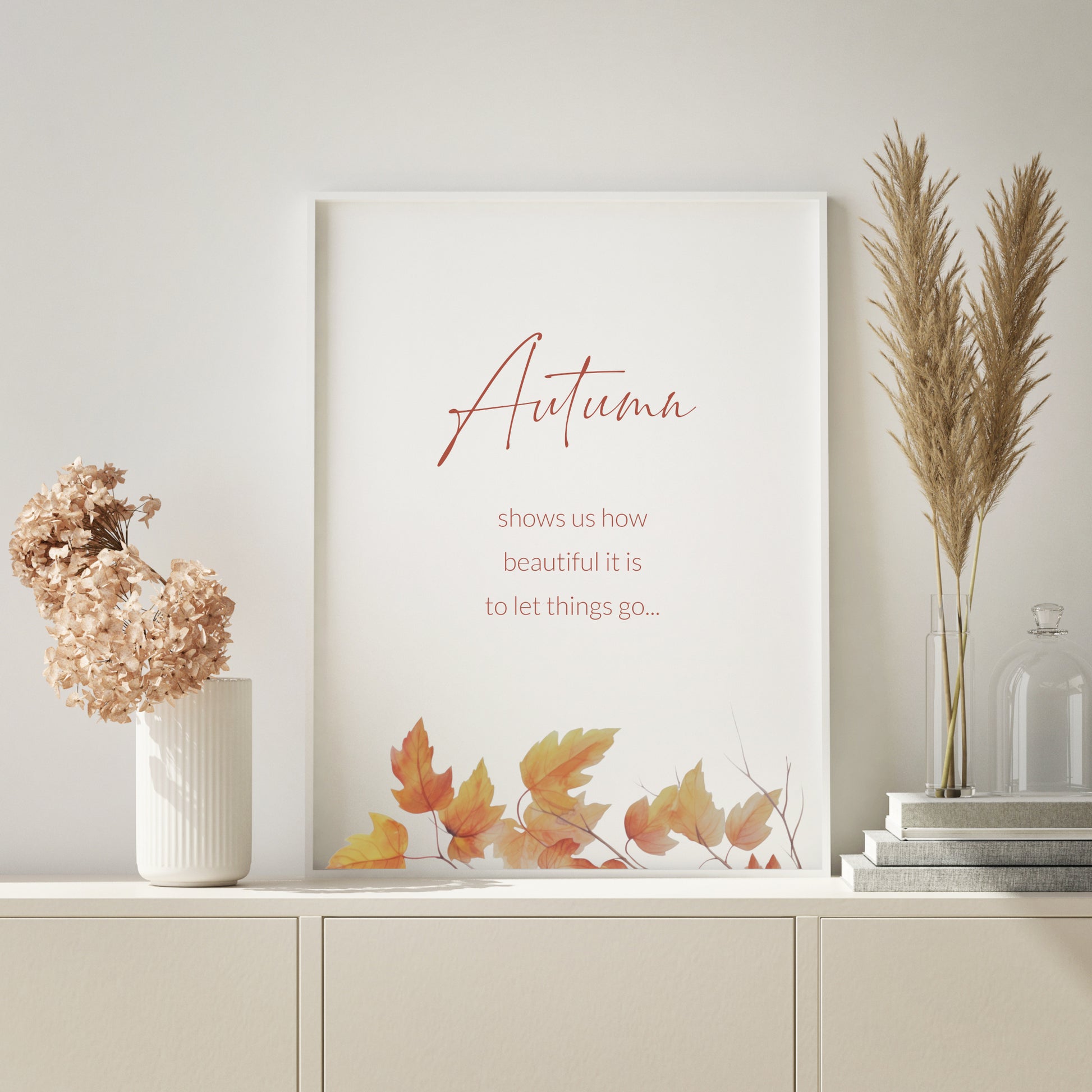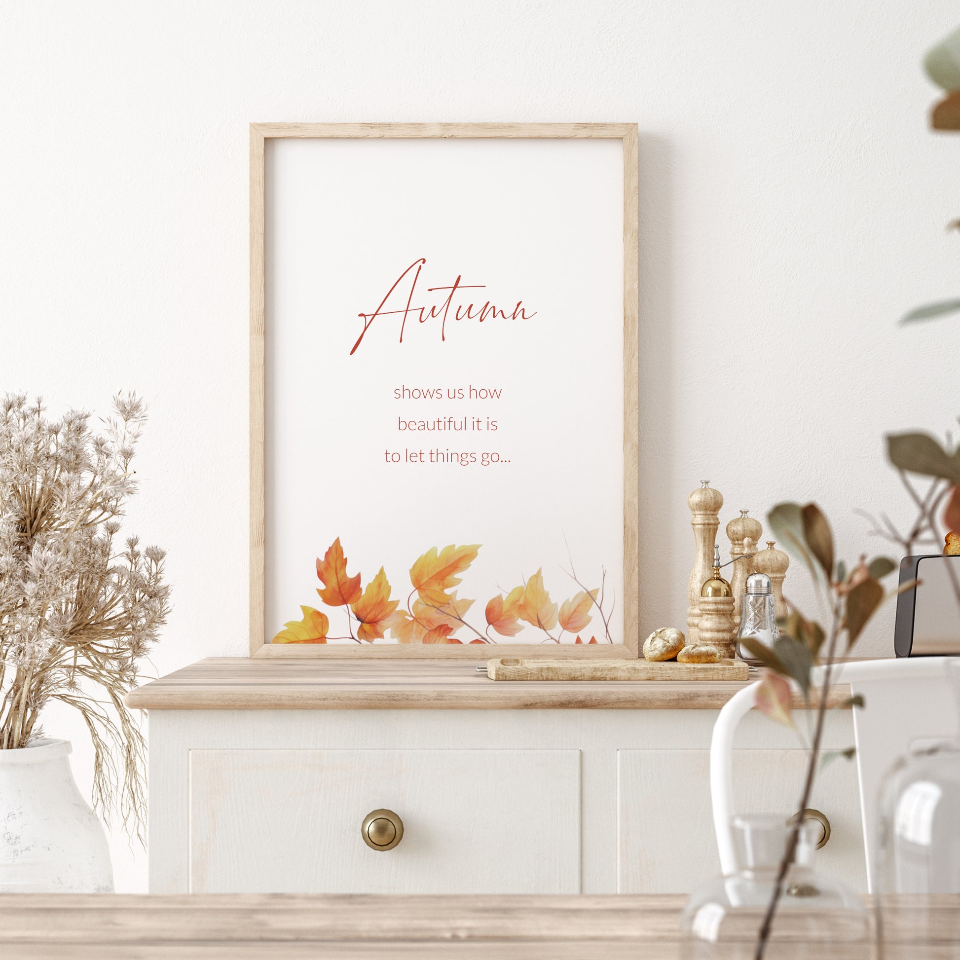 Quote reads: "Autumn shows us how beautiful it is to let things go..."
