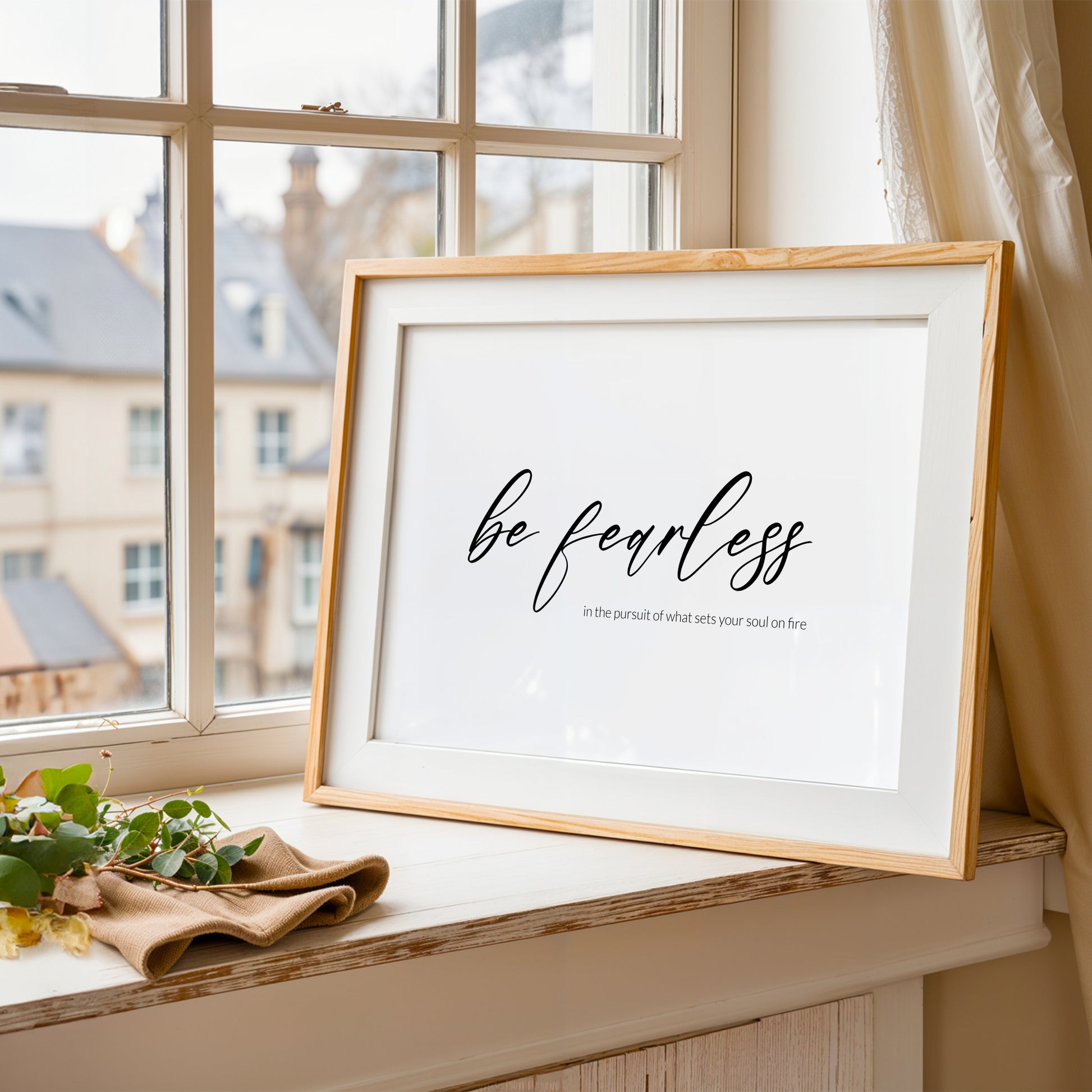 This stunning print features the empowering quote "Be fearless in the pursuit of what sets your soul on fire". Designed to inspire and motivate, it is the perfect addition to any space where you want to encourage the relentless pursuit of your dreams and embracing your true self. It's also the perfect gift for lots of occasions.