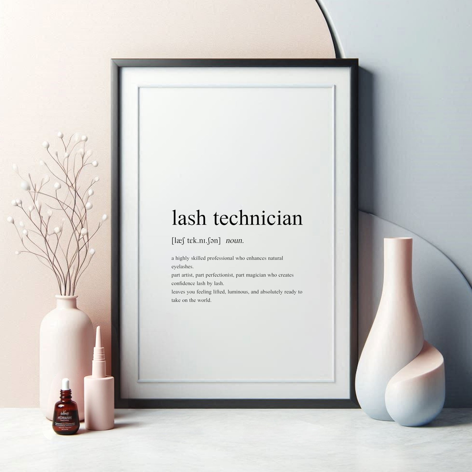 Celebrate the skill, artistry, and care that go into every set of lashes with this Lash Technician definition print. Designed in a minimalist, contemporary style, it captures the spirit of what lash technicians do - enhancing natural beauty with precision, creativity, and a steady hand.