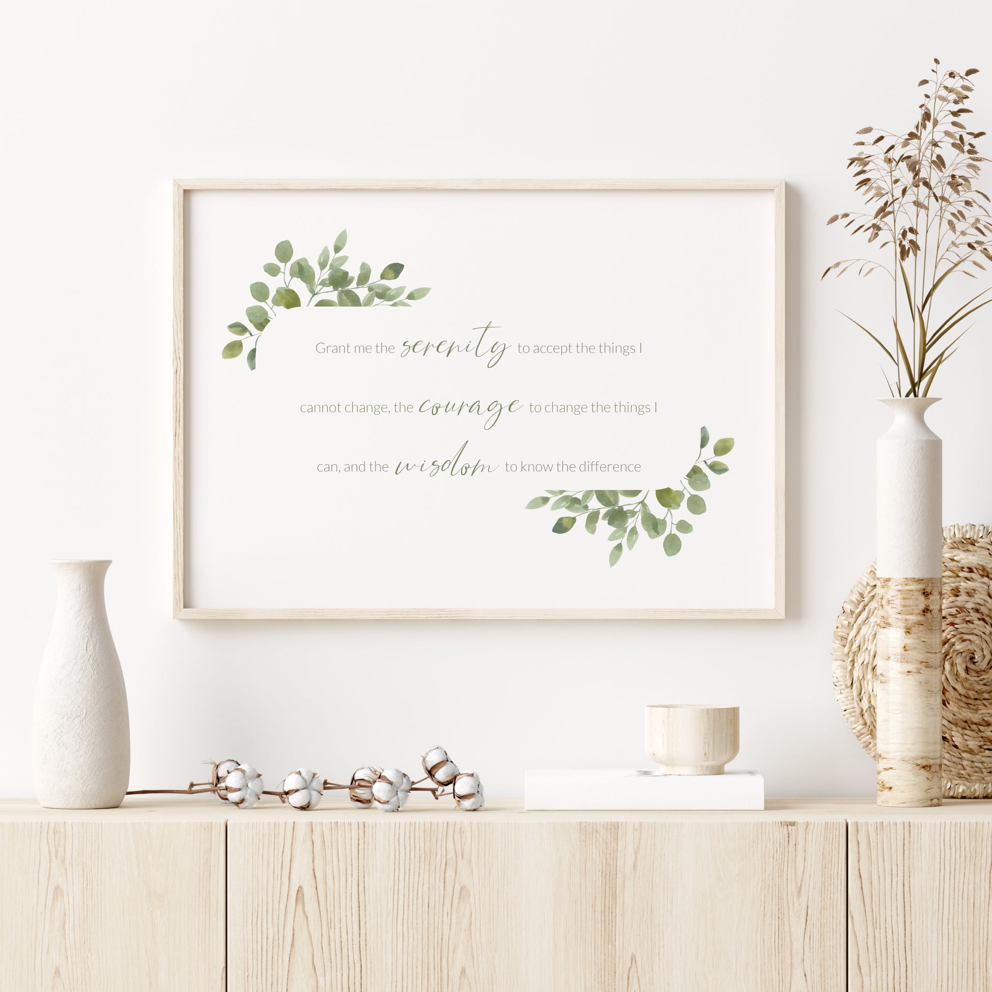 The Serenity Prayer is one of the best known prayers among both religious and non-religious people. Acknowledging that it can be difficult to comprehend the difference between what is within and outside of our control in life, it inspires us to find peace by accepting those things beyond our control, while encouraging us to change what we can. A simple and beautiful meditation, this agnostic version is a powerful way to find calm in moments of struggle. It would make a lovely addition to any home, or a wonderfully thoughtful gift for a friend or loved one.