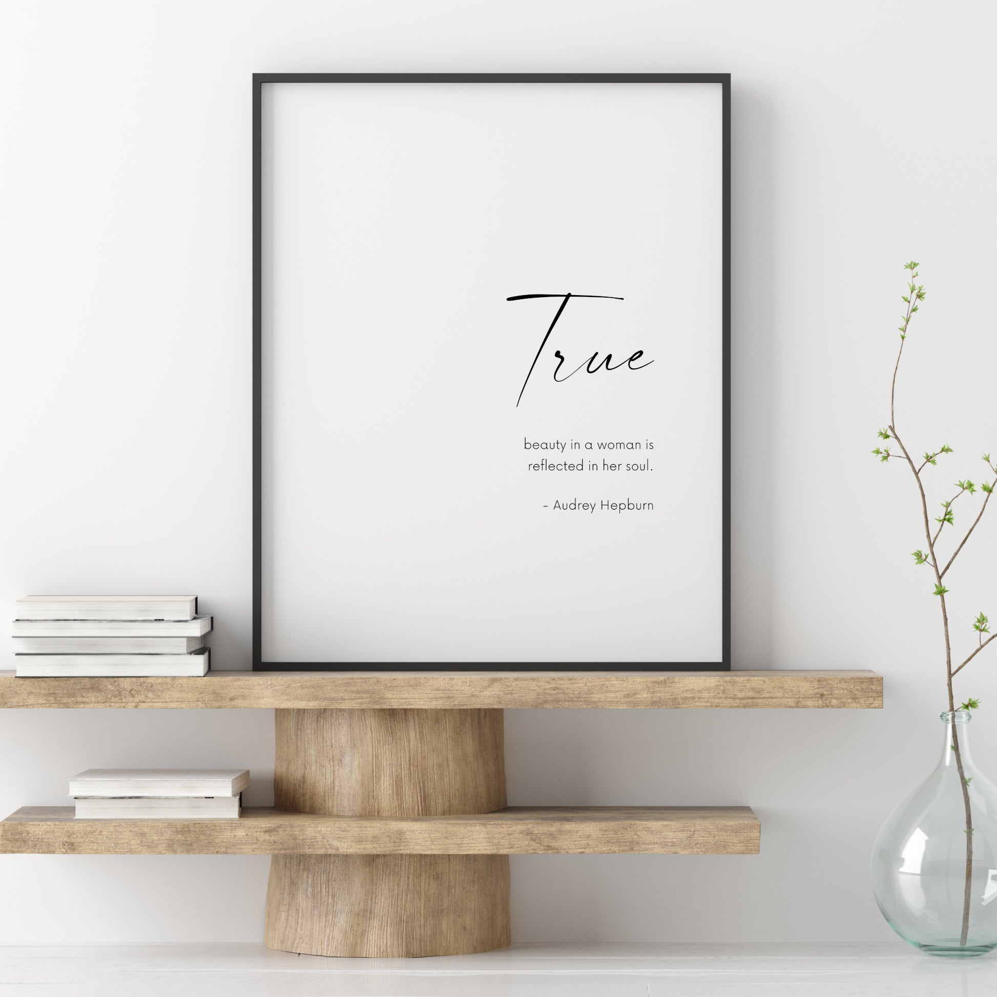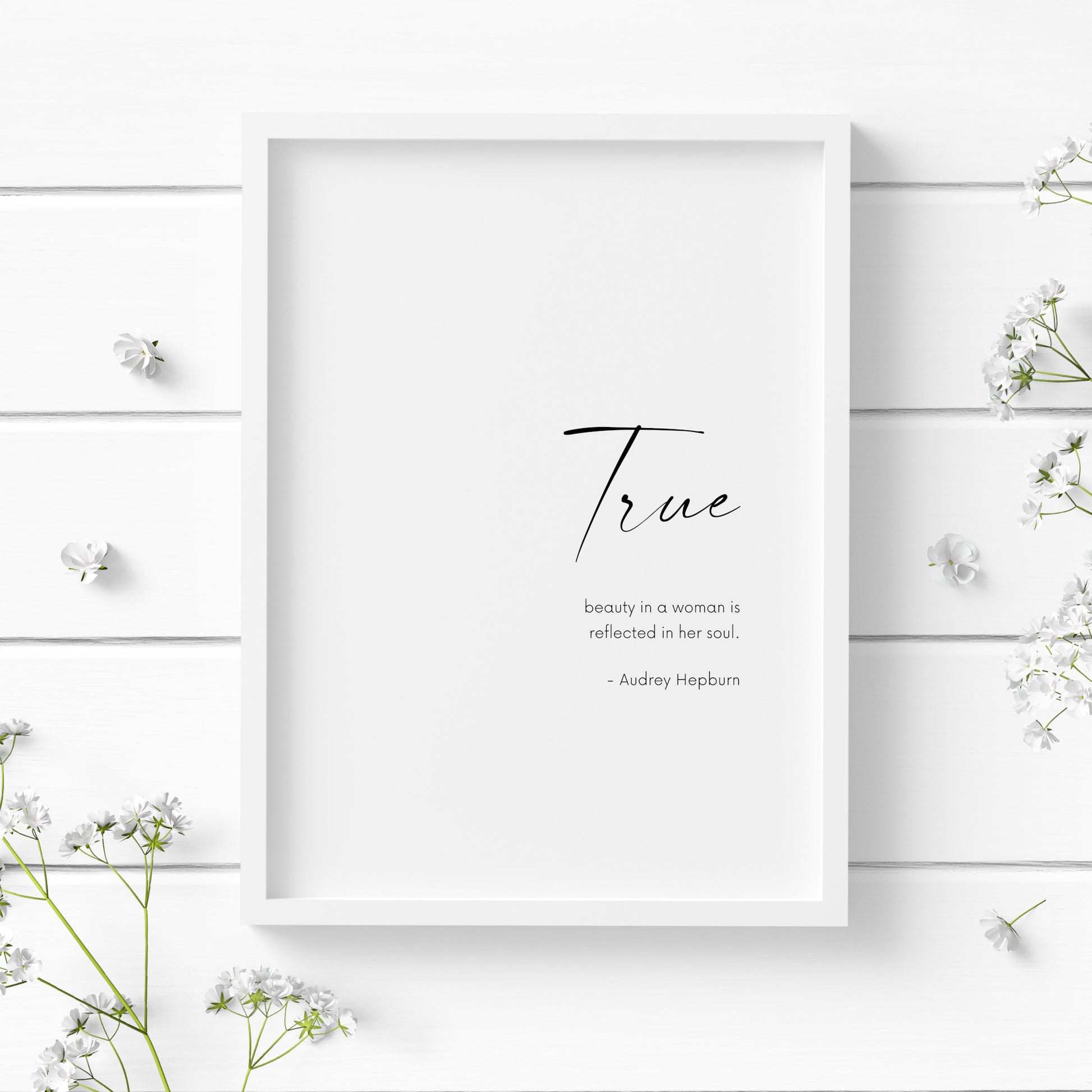 Quote reads "True beauty in a woman is reflected in her soul. - Audrey Hepburn".