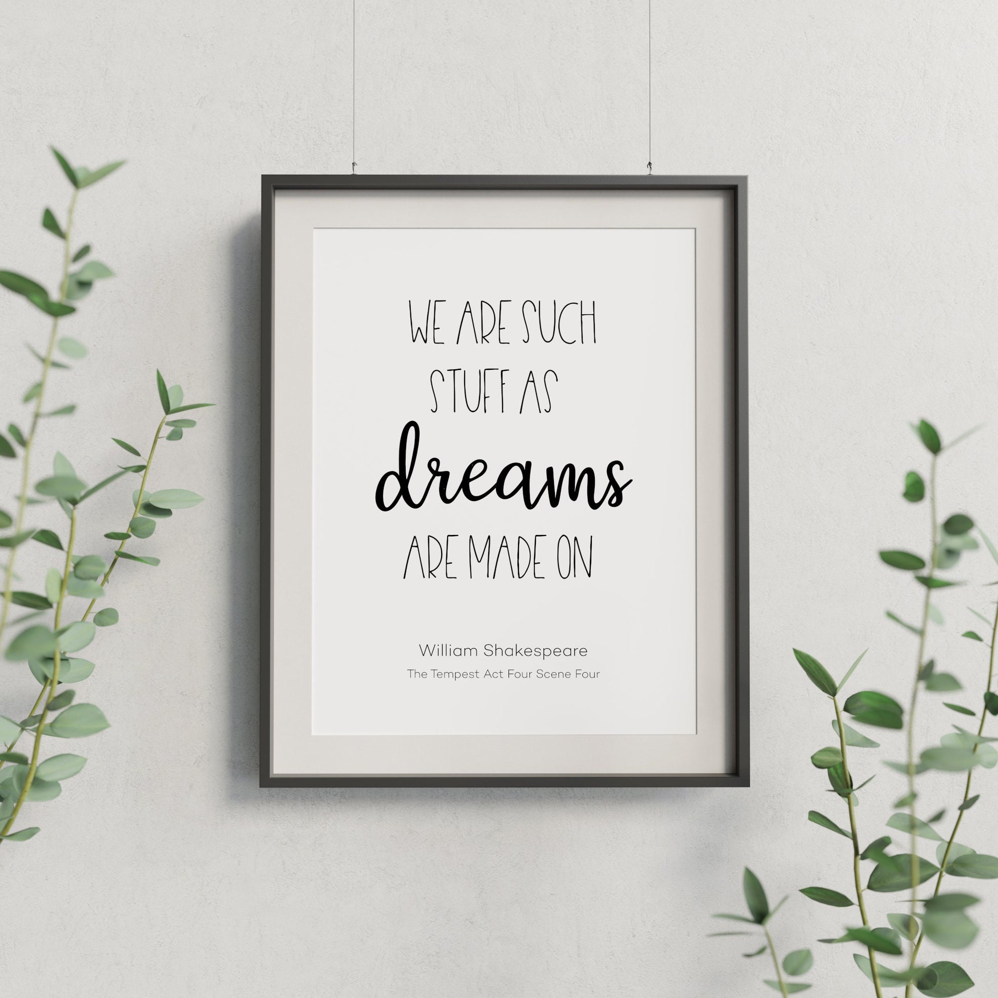 Quote reads "We are such stuff as dreams are made on - William Shakespeare - The Tempest Act Four Scene Four".