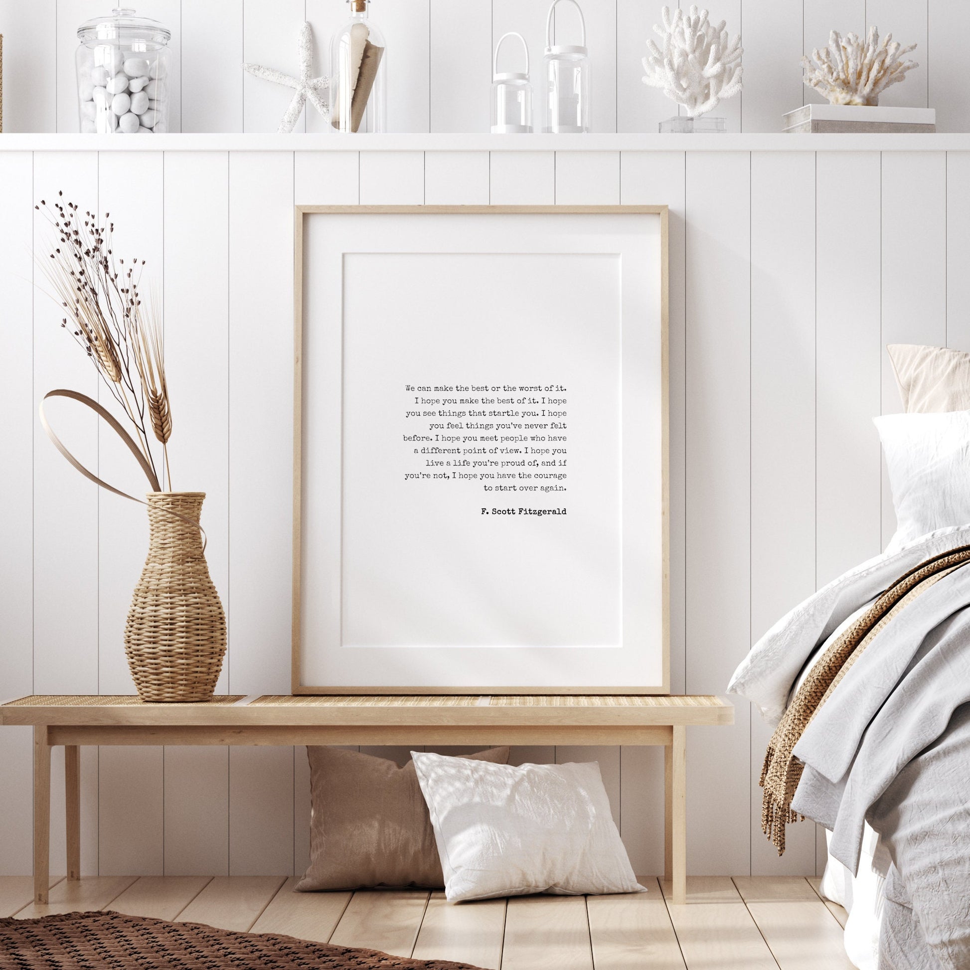 Quote reads "We can make the best or the worst of it. I hope you make the best of it. I hope you see things that startle you. I hope you feel things you’ve never felt before. I hope you meet people who have a different point of view. I hope you live a life you’re proud of, and if you’re not, I hope you have the courage to start over again. - F. Scott Fitzgerald".