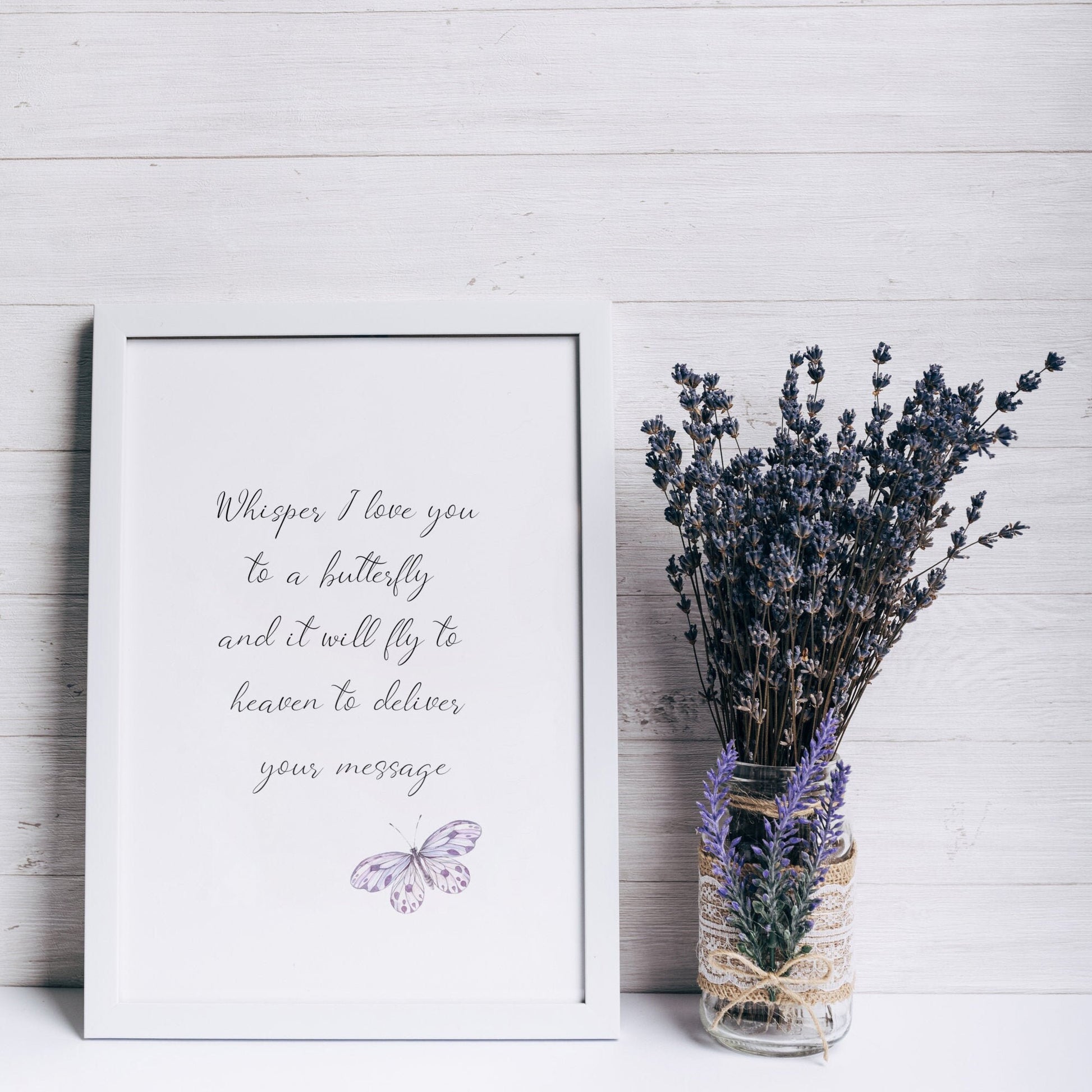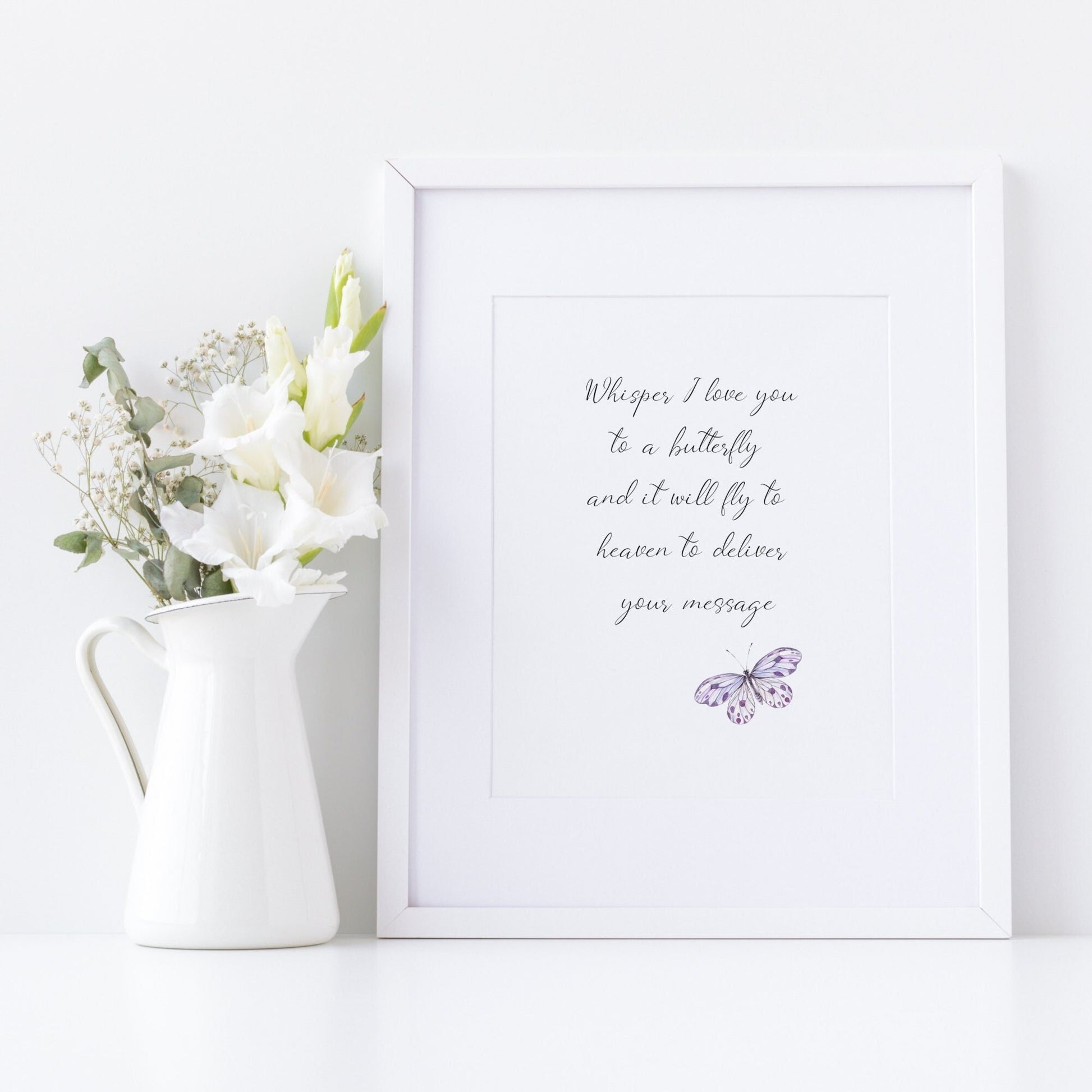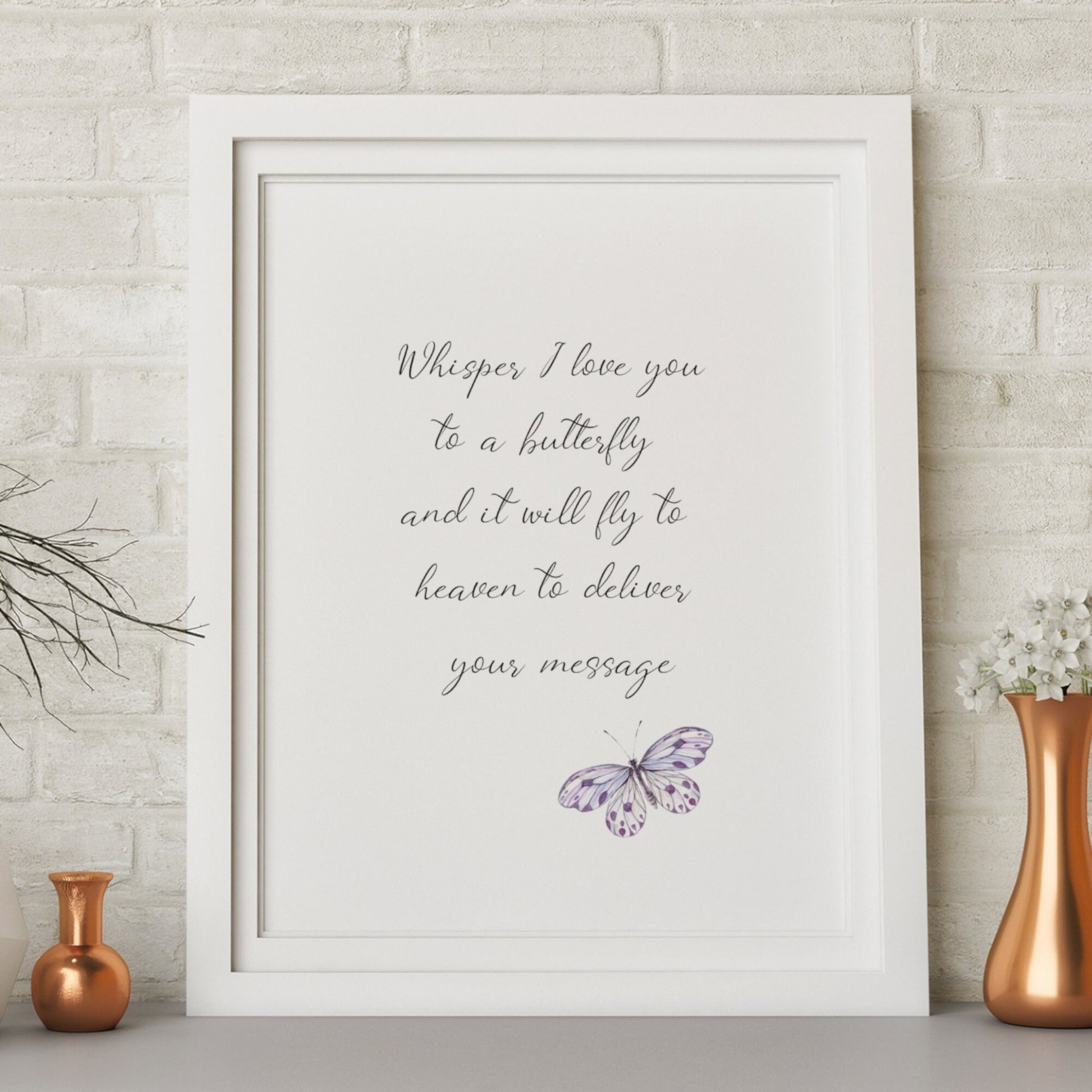 Quote reads "Whisper I love you to a butterfly and it will fly to heaven to deliver your message".