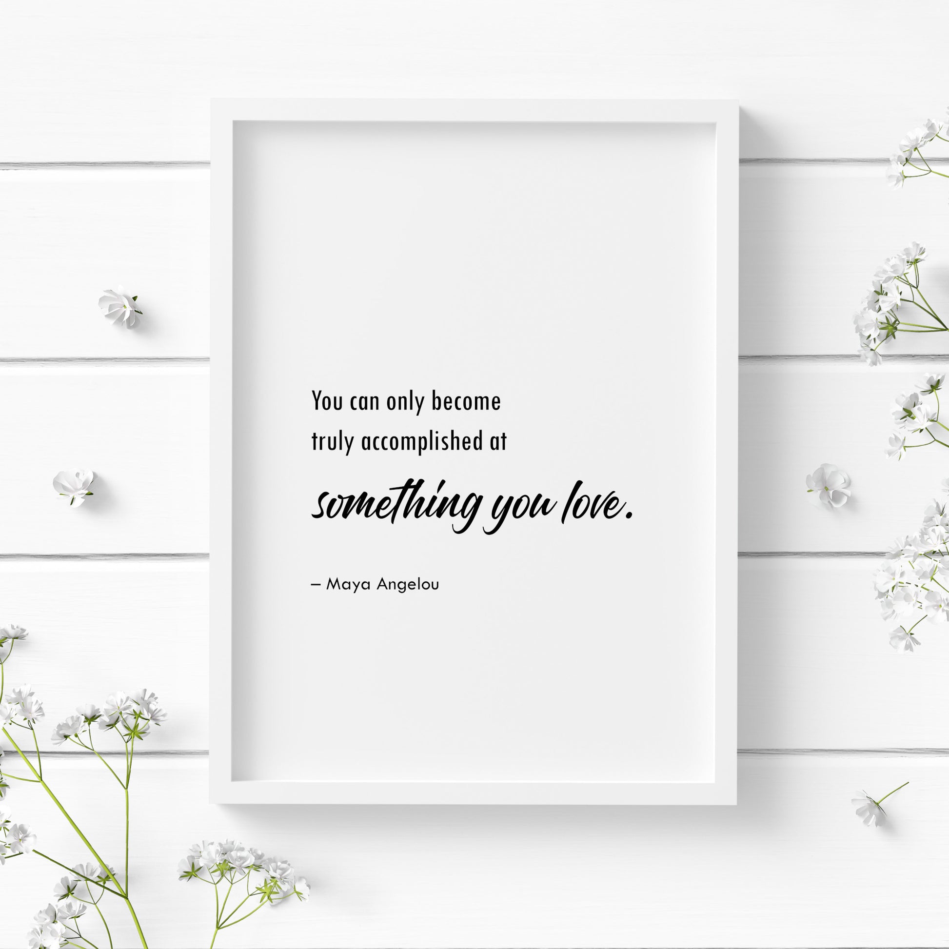 Quote reads "You can only become truly accomplished at something you love. - Maya Angelou".